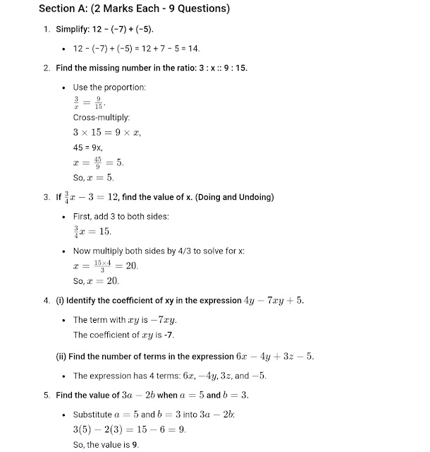 Class 7 Mathematics Test Max Marks: 40 | Time: 1 hour 15 minutes Chapters : Section A – Choose the Correct Answer (3 × 1 = 3...
